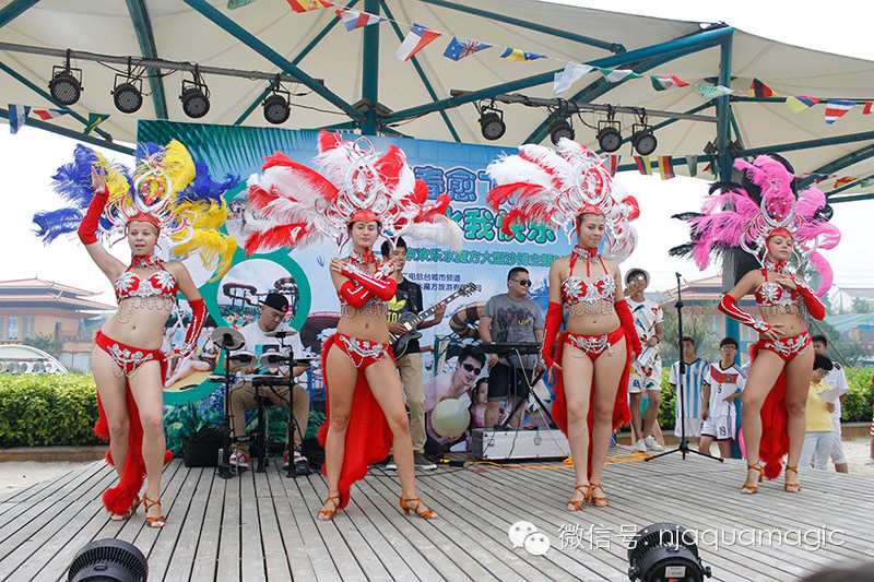 开场舞是今年水魔方演绎升级板块特色项目桑巴Olala,精致绚丽的服装,肆意狂欢的舞步,热情动感的音乐,酣畅淋漓的球赛,让游客不由自主地融入狂欢的节奏,随着热辣的桑巴Girl一起舞动起来,冲破压力释放激情,奔赴狂热的桑巴国度!